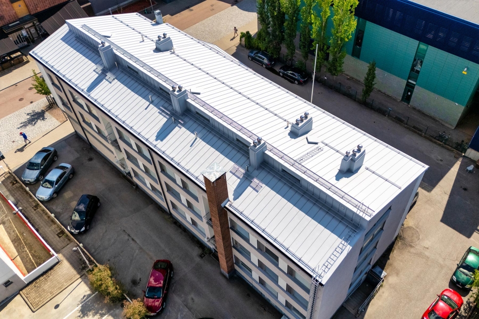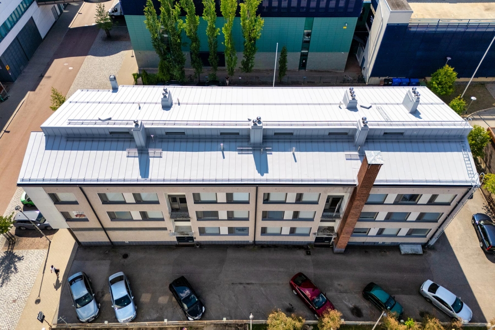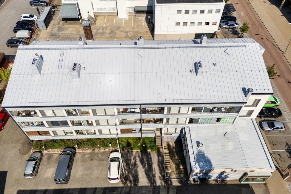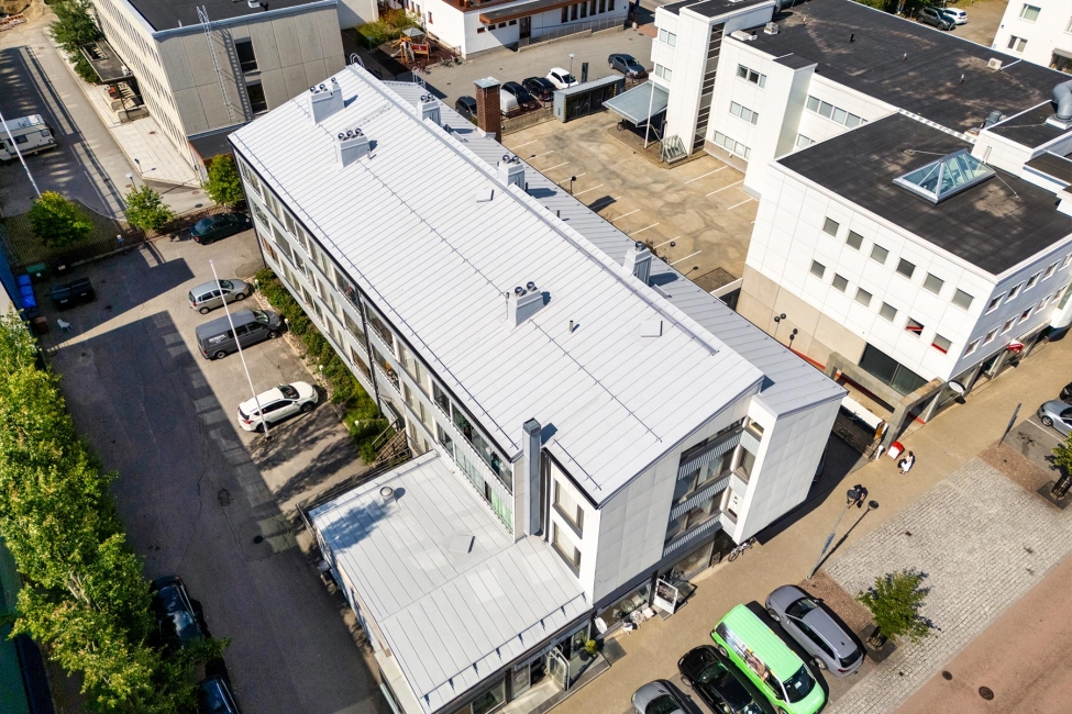Joensuun keskustassa sijaitsevan As Oy Joensuun Kauppatalon konesaumakatto uusittiin kesällä 2023 ELINKARIKATTO®-urakkamallilla. Sen ansiosta katon säännöllinen ylläpito varmistettiin jo suunnitteluvaiheessa tuleviksi vuosikymmeniksi. Remontissa uusittiin myös kattoturvatuotteet ja asennettiin IKIKOURU®-järjestelmä.