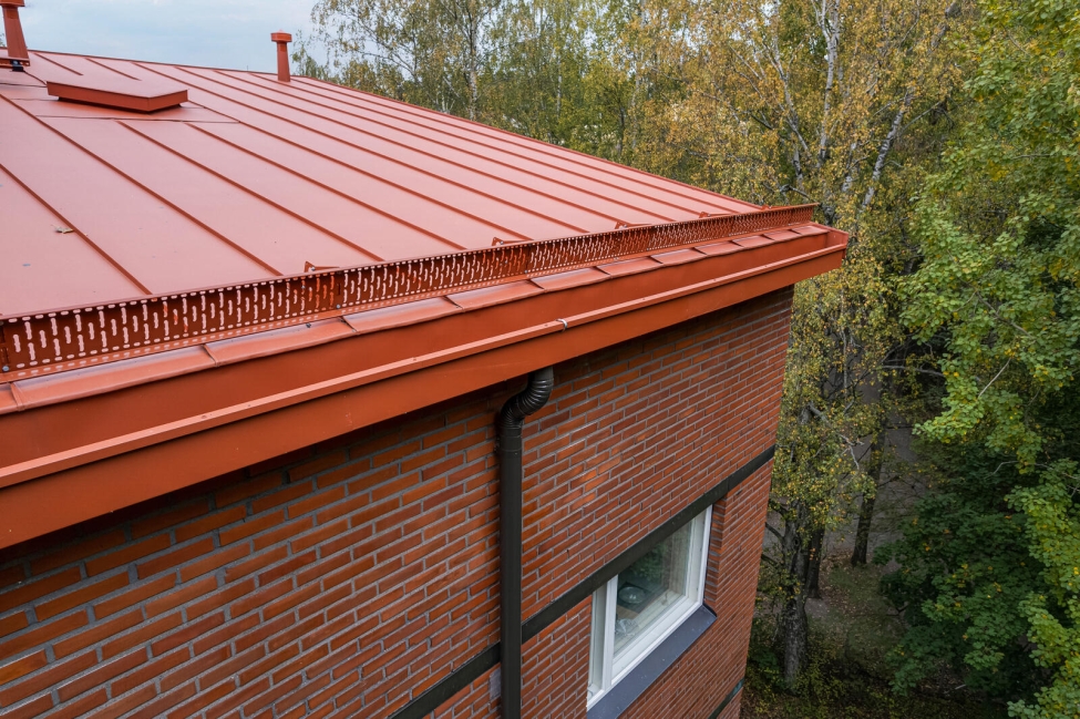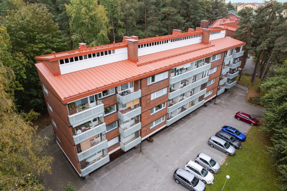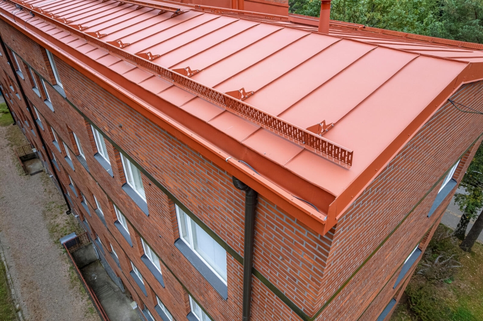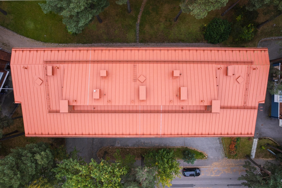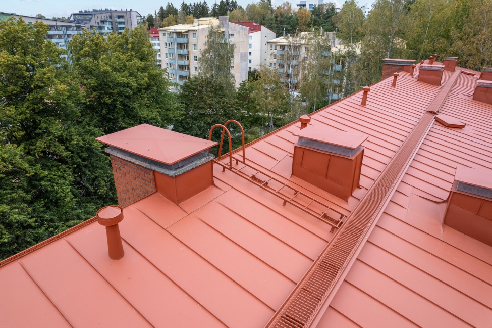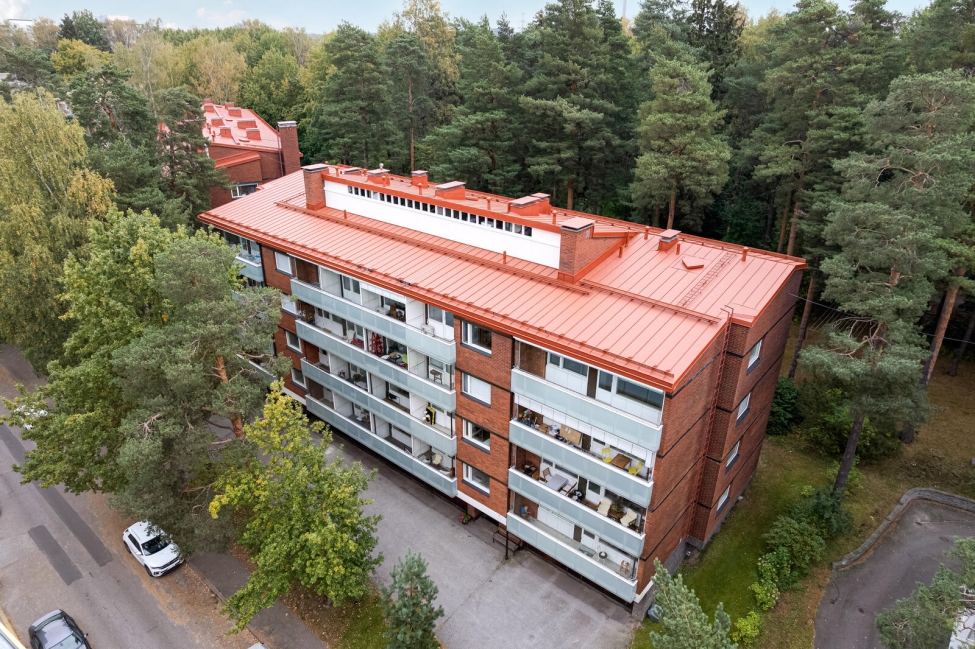 Munkkiniemeläisen taloyhtiön kattoremontissa uusittiin kahden kerrostalon vesikatto alusrakenteineen. Uutta konesaumakattoa syntyi yhteensä noin 1150 m². Koko kattoremontti toteutettiin kevään 2025 aikana sääsuojan alla, mikä varmisti työn korkean laadun ja aikataulussa pysymisen kaikissa olosuhteissa.
